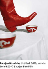 Baurjan Bismildin (*1987) gehört einer jungen Generation kasachischer Fotograf/innen an. Er interessiert sich für eine neue Ästhetik, welche abweicht von normierten Schönheitsidealen, wie wir sie aus Hochglanzmagazinen kennen, und rückt in seinen Modefotografien die Einzigartigkeit seiner Protagonist/innen sowie die Vielfalt der Gesellschaft Kasachstans in den Fokus. Zudem lässt er unterschiedlichste visuelle Elemente der kasachischen Kultur wie Szenen traditioneller kasachischer Riten, Feste oder Gebräuche aber auch Objekte und Artefakte in seine Werke einfliessen.