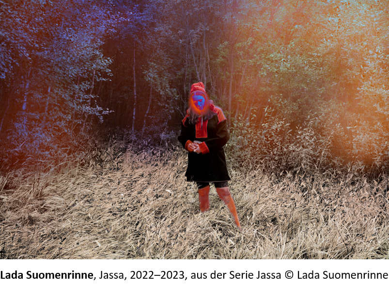 Lada Suomenrinne (*1995) ist am nördlichsten Punkt Finnlands als Teil einer samischen Familie aufgewachsen. Die Samen sind eine Indigenen Gemeinschaft, deren Siedlungsgebiet Sápmi sich über Nordskandinavien und Nordfinnland bis zur russischen Halbinsel Kola erstreckt. Suomenrinnes fotografischen Werke erforschen nebst Fragen der Zugehörigkeit und kulturellen Identität auch die Verbundenheit der Menschen mit der Natur. Im stetigen Dialog mit der natürlichen Umgebung erforscht Suomenrinne unter anderem samische Mythen und Riten und damit das kulturelle Erbe von Suomenrinnes Vorfahren.