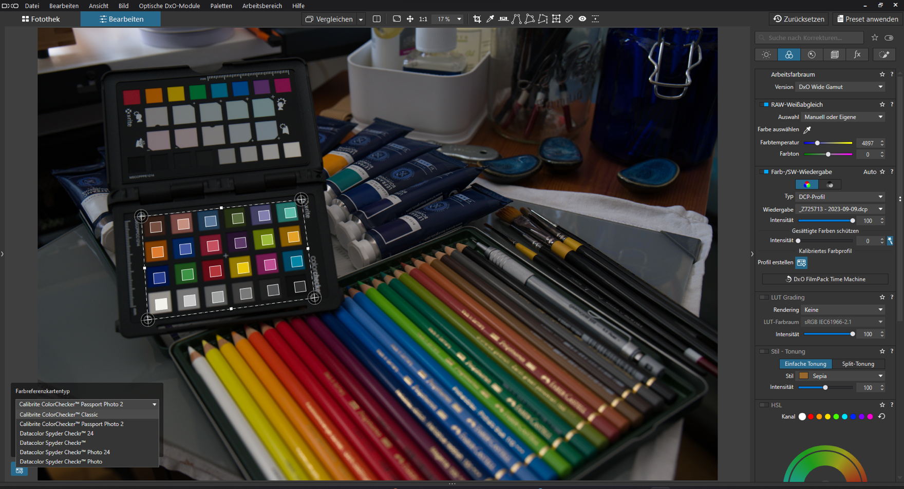 Der Farbe verpflichtet: Mit dieser neuen Version von PhotoLab können Fotografen realitätsnahe, wissenschaftlich genaue Farbprofile auf ihre Bilder anwenden. PhotoLab 7 wird durch ein Werkzeug unterstützt, das in Verbindung mit einer von sechs gängigen Farbkalibrierungskarten von Calibrite und Datacolor arbeitet. Somit werden die durch die menschliche Wahrnehmung bedingten Fehler und das Rätselraten bei der Kompensation des Umgebungslichts oder des Farbprofils eines Monitors beseitigt.
