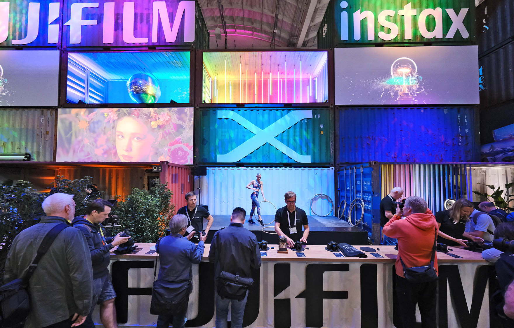 Im Mittelpunkt der Fujifilm-Präsentation stand die kleine Instax Pal für Instagrammer. Auch hier wurden Container für den Hintergrund verwendet.