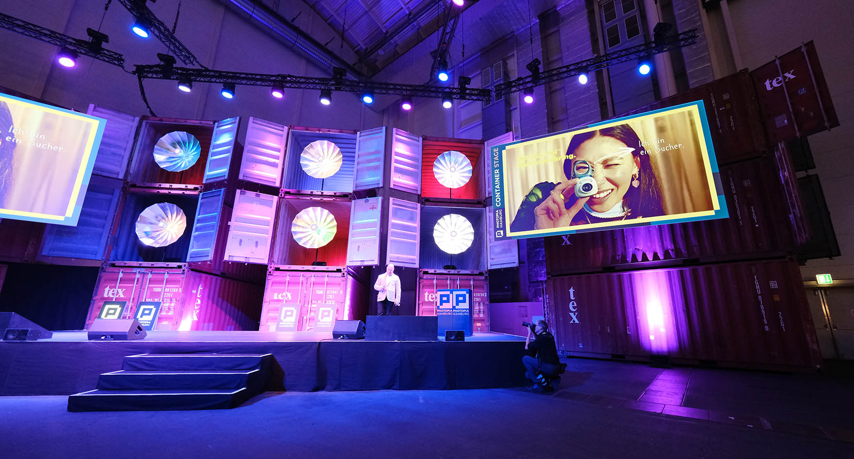 Die vielseitig einsetzbaren Hamburg-typischen Schiffscontainer haben sich als Markenzeichen der Photopia etabliert. In den zwei grossen Messehallen A1 und A4 unterm Fernsehturm bestimmten sie auch dieses Jahr wieder das Bild. 350 der bunten Boxen bildeten, zu ebener Erde oder in die Höhe gestapelt, eine eigene Photopia-Festival- und Messestadt, wie grosser Markt, mit Ständen, Gängen, Plätzen und Bühnen. Die Container dienten der Produkt- und Bildpräsentation oder aktiven Fotografen als Mini-Studios. Die zahlreichen Stände der Kamera-, Zubehör- und Serviceanbieter waren auf einer Messe der kurzen Wege bequem und entspannt erreichbar. Die Gänge waren gut gefüllt, aber Corona-Angst hatte kaum jemand, Masken waren beim Publikum so gut wie nicht zu sehen. Grösseres Gedränge gab es nur gelegentlich bei einigen Präsentationen vor einzelnen Ständen.
