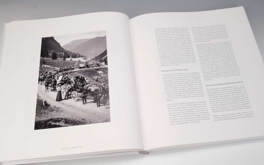 Der Bildteil besteht, abgesehen von 27 historischen Bildern als Textillustrationen, aus zwei Portfolios von Richard von Tscharner, welche uns die verschiedenen Alpenpässe nicht nur aus neuen Perspektiven zeigen, sondern auch mit vielen verborgenen Details und Landschaften in besonderen Lichtstimmungen – die meisten davon übrigens in hervorragend gedrucktem Schwarzweiss. Richard von Tscharner muss jahrelang an diesem Projekt gearbeitet haben und entführt uns nun an Orte, welche die von Eile getriebenen Touristen auf ihrer Reise in den Süden nie sehen werden. Interessante und gut beschriebene Details dazu befinden sich in einen gesonderten Legendenteil im Anhang des Buches, dort wo übrigens auch neun historische Karten der Schweiz zu finden sind, welche die Verkehrswege über die Alpen in den verschiedenen Epochen deutlich machen.