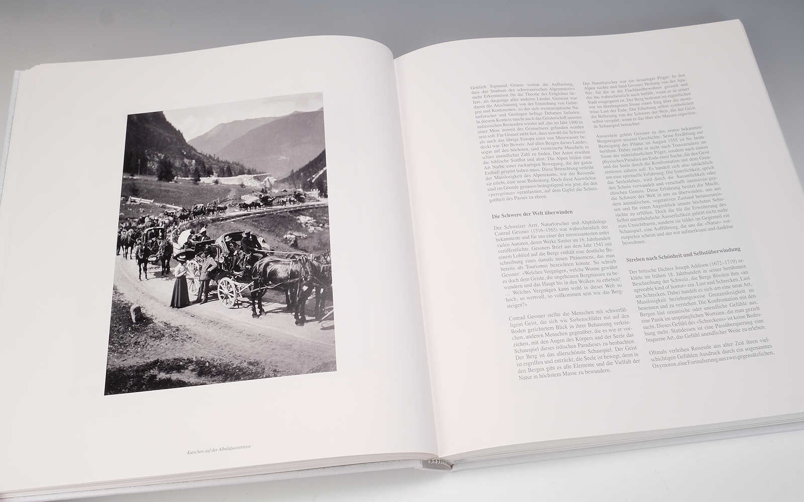 Faszinierend der historische Teil, der auch mit seltenen Bildern aus verschiedensten Quellen bebildert ist, der uns verdeutlicht, welche Bedeutung den Schweizer Pässen für die Reise von Norden nach Süden und von Süden nach Norden je hatten. Damals, als die Reise über die herausfordernden Gebirge mehrere Tage dauerte und über gefährliche Saumpfande führte, bis dann die Strassen für die Pferdewagen, die Postkutschen und später für die Automobile immer breiter ausgebaut werden mussten und schliesslich die Bahn heute den längsten Gebirgsdurchstich der Welt von 57 Kilometern Länge in nur 17 Minuten durchfährt. Was sich in dieser Entwicklung an Geschichten, Episoden und Tatsachen alles ereignet hat, was es an Energie, Durchhaltewillen und technischem Fortschritt zur Realisierung der Vorhaben alles gebraucht hat, davon vermitteln die Texte dieses spannenden Buches viel Wissenswertes.