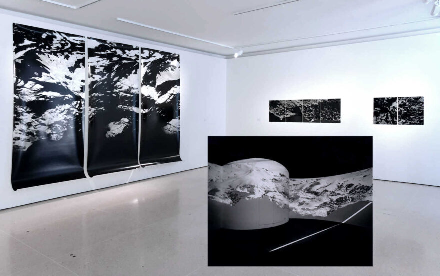 Die Camera Obscura, Urform aller Kameras, hat Guido Baselgia ihren Bann gezogen. Das Phänomen, wie durch ein kleines Loch ohne Linse in einem dunklen Raum ein Bild sichtbar wird und auf Fotomaterial festgehalten werden kann, hat den Künstler veranlasst auf der Bernina Passhöhe in einem Strassenunterhalts-Stützpunkt eine begehbare Kamera einzurichten, in welcher er mannsgrosse Bahnen von Fotopapier stundenlang belichtet und dann mit Landschaften mit negativen Tonwerten belohnt wird.