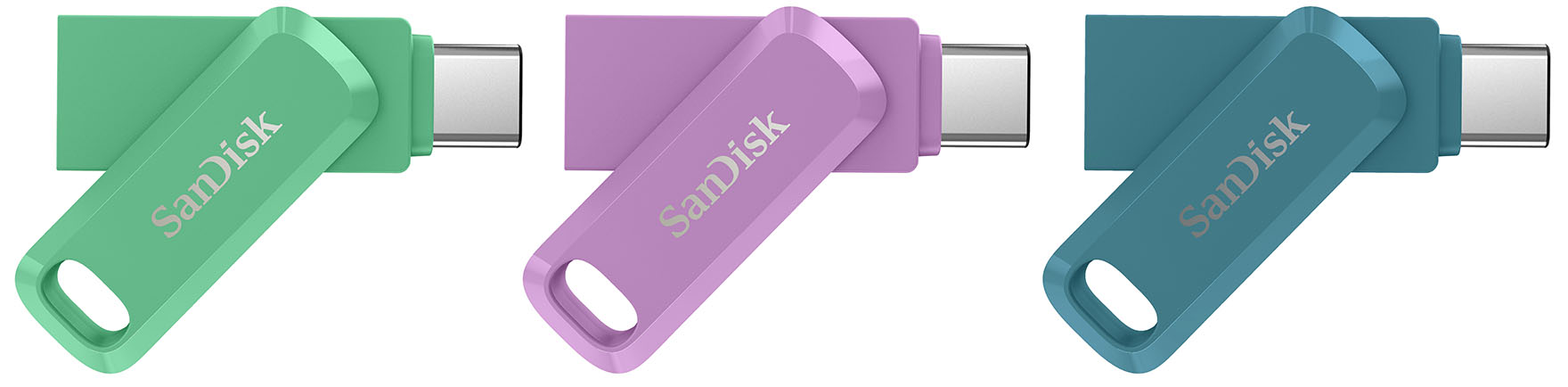 Ultra Dual Drive Go USB Typ-C: Der Stick ist mit USB-Typ-C- und Typ-A-Geräten kompatibel und bietet Übertragungsgeschwindigkeiten von bis zu 400 MB/s bietet. Im doppelseitigen Schwenkdesign ist das Flash-Laufwerk auch unterwegs geschützt. Den Stick gibt es in den Farben Absinthgrün, Lavendel und Navagio Bay mit Kapazitäten von 64 GB bis 256 GB sowie in Schwarz mit bis zu 1 TB.