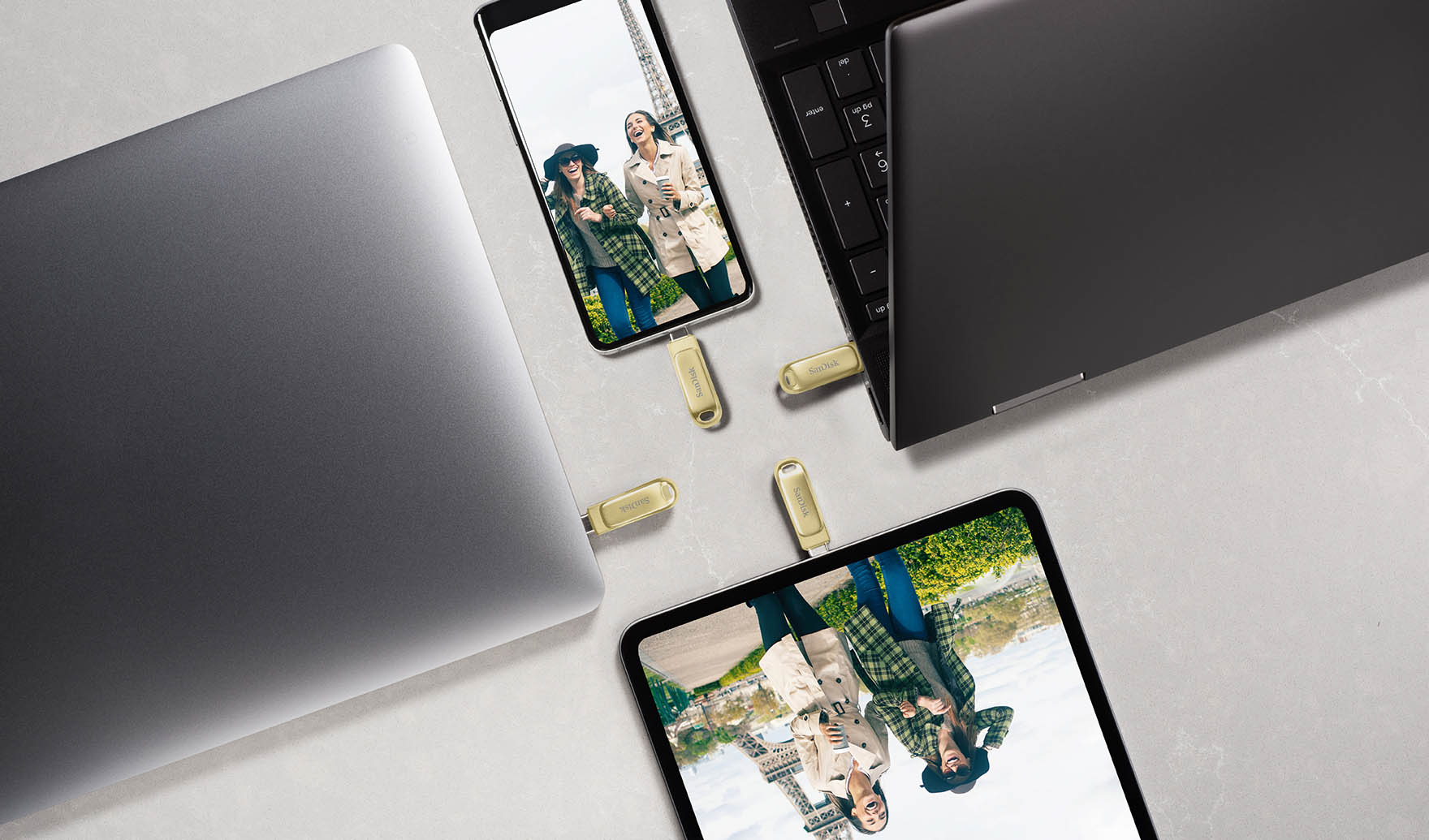 Mit den überarbeiteten USB-Sticks von SanDisk lassen sich Dateien mühelos zwischen Smartphone, Tablet und Mac mit «USB Typ C»-Port sowie Computern mit«USB Typ A»-Port Geräten austauschen und auf verschiedenen Geräten nutzen.
