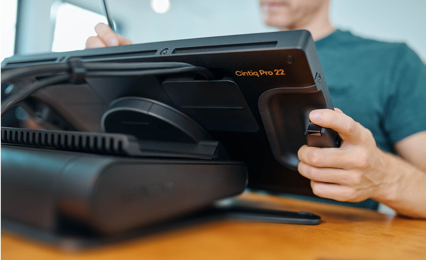 Kreativ-Profis, die ihre Arbeitsumgebung noch weiter anpassen möchten, können separat einen speziell für die Optimierung des kreativen Schaffens konzipierten Wacom Standfuss erwerben oder ihr Cintiq Pro an kompatiblen Display-Armen oder Standfüssen von Drittanbietern befestigen.