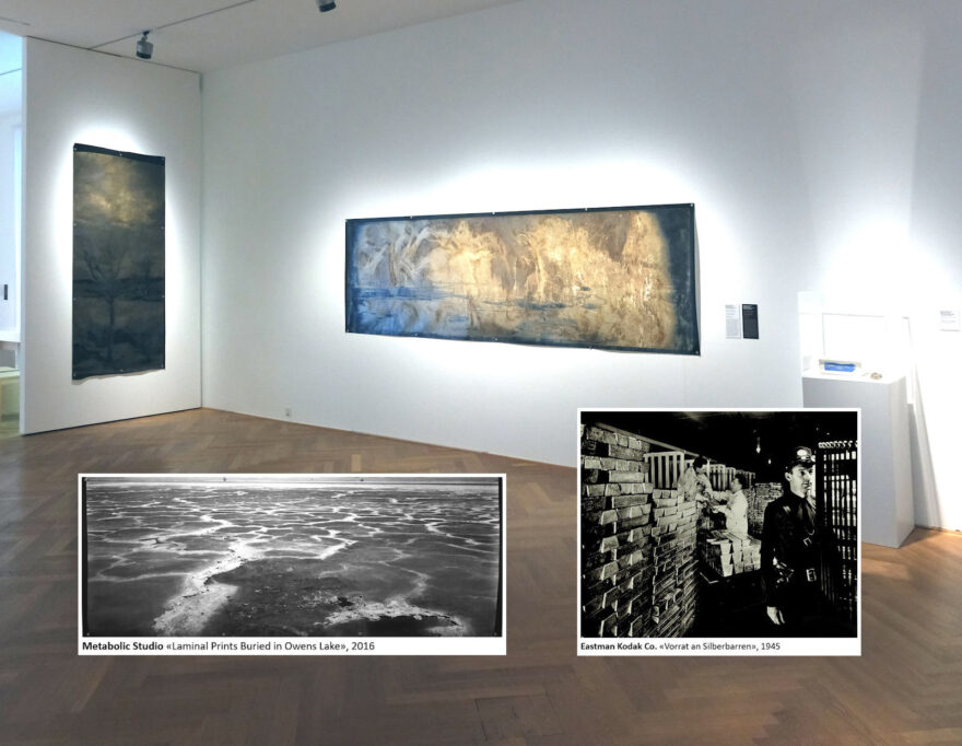 Dieses Edelmetall ist die Grundlage des fotografischen Bildes und wird dafür noch heute benötigt. Unter den in der Ausstellung behandelten Rohstoffen ist die Fotoindustrie für Silber zumindest zeitweilig der weltweit grösste industrielle Abnehmer. Hier zeigt sich die schiere Menge an benötigtem Material am deutlichsten. Die Arbeiten von Daphné Nan Le Sergent und dem Kollektiv Optics Division of the Metabolic Studio berühren die Zusammenhänge des Rohstoffabbaus, seiner kolonialen Hintergründe und der Verarbeitung von Silber. Sergent beschäftigt sich auch mit dem Einfluss des Marktwerts des Edelmetalls, der technische Innovationen vorangetrieben und lukrativer gemacht hat.