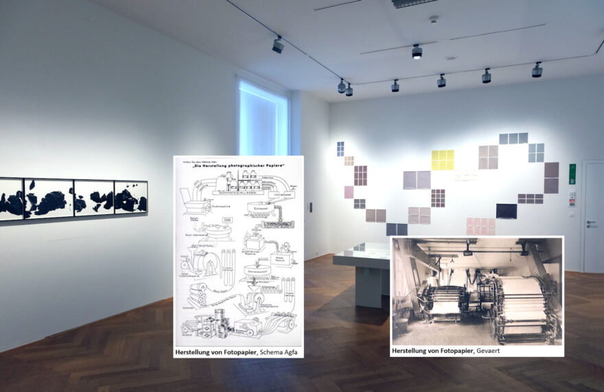 Die Materialien Flachs, Baumwolle und Gelatine werden näher beleuchtet. Papier wurde im 19. Jahrhundert zunächst auf Basis von Lumpen, die aus Baumwolle oder Flachs bestanden, vornehmlich in Europa produziert. Die Baumwolle pflanzte und erntete man um 1860 in den amerikanischen Südstaaten mithilfe von Sklaven und Sklavinnen, verschiffte sie nach Europa, um sie dort zu Stoffen zu verarbeiten, die dann als Lumpen den Hauptanteil von Papier ausmachten. Erst im 20. Jahrhundert wurde Holz in Form von Zellulose in der Papierproduktion eingesetzt. Die Fotograf/innen Alison Rossiter und F&D Cartier thematisieren die unterschiedliche Materialität historischer Fotopapiere in poetisch abstrakten Bildfindungen. Tierische Produkte waren für die Beschichtung dieser Papiere unabdingbar. Im 19. Jahrhundert waren es Eier, im 20. Jahrhundert Gelatine, die hauptsächlich aus Rinderknochen hergestellt wurde, welche für die Herstellung von Fotomaterial erforderlich waren. Die brutale Realität der industrialisierten Fleischproduktion dokumentieren und reflektieren Madame d’Ora und James Welling, die sich auf unterschiedliche Weise den Materialien der fotografischen Beschichtung widmen. Für die Ausstellung hat Tobias Zielony eine Arbeit geschaffen, die auf Recherchen in der ehemaligen Agfa-Filmfabrik Wolfen basiert und auf die Aspekte von Arbeit und Ökologie in der Fotoindustrie fokussiert.