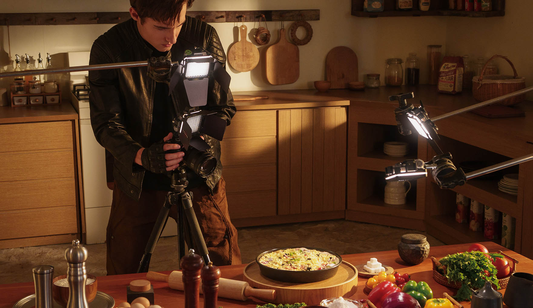 M20-Leuchten im praktischen Einsatz beim Ausleuchten eines Food-Stilllebens.