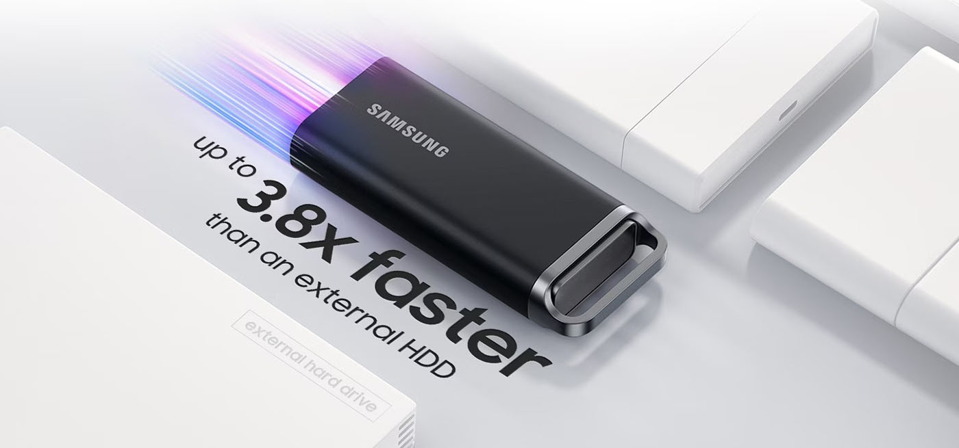 Die Kombination aus kompaktem Design und grossem Speicher bietet den Nutzerinnen und Nutzern schnellere Geschwindigkeiten, eine gleichwertige Speicherkapazität und ein kleineres, leichteres Gehäuse (102 Gramm) im Vergleich zu einer externen HDD.