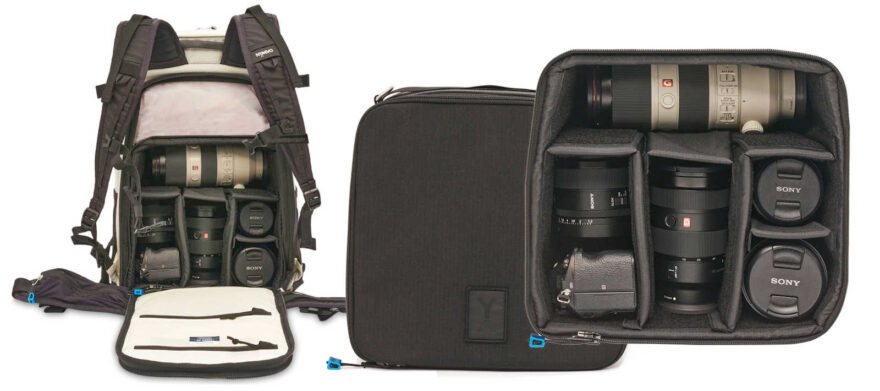 Es gibt mehrere anpassungsfähige und gepolsterte Inserts für die entsprechende Fotoausrüstung. Sie schützen das Fotoequipment optimal und lassen sich klein zusammenfalten. Beim Gewinn ist ein «Medium Insert» (siehe Abbildung) enthalten, welches beispielsweise Platz für ein Kameragehäuse, vier Objektive und ein Blitzgerät bietet und üblicherweise gesondert erworben werden muss.