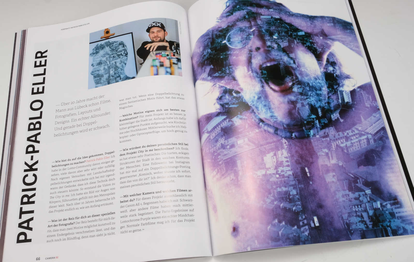 Das Heft zeichnet sich auch durch einen abwechslungsreichen Bildteil aus, mit drei Portfolios von Vera Elisabeth, Burcu Beaufort und Patrick-Pablo Eller. Das übergreifende Thema sind Doppel-und Mehrfachbelichtungen, welche die drei Bildschaffenden auf sehr unterschiedliche und kreative Art angehen. Die Bilder verblüffen, machen stutzig – und regen dazu an, ähnliches zu versuchen. Natürlich mit Film und nicht mit Photoshop.