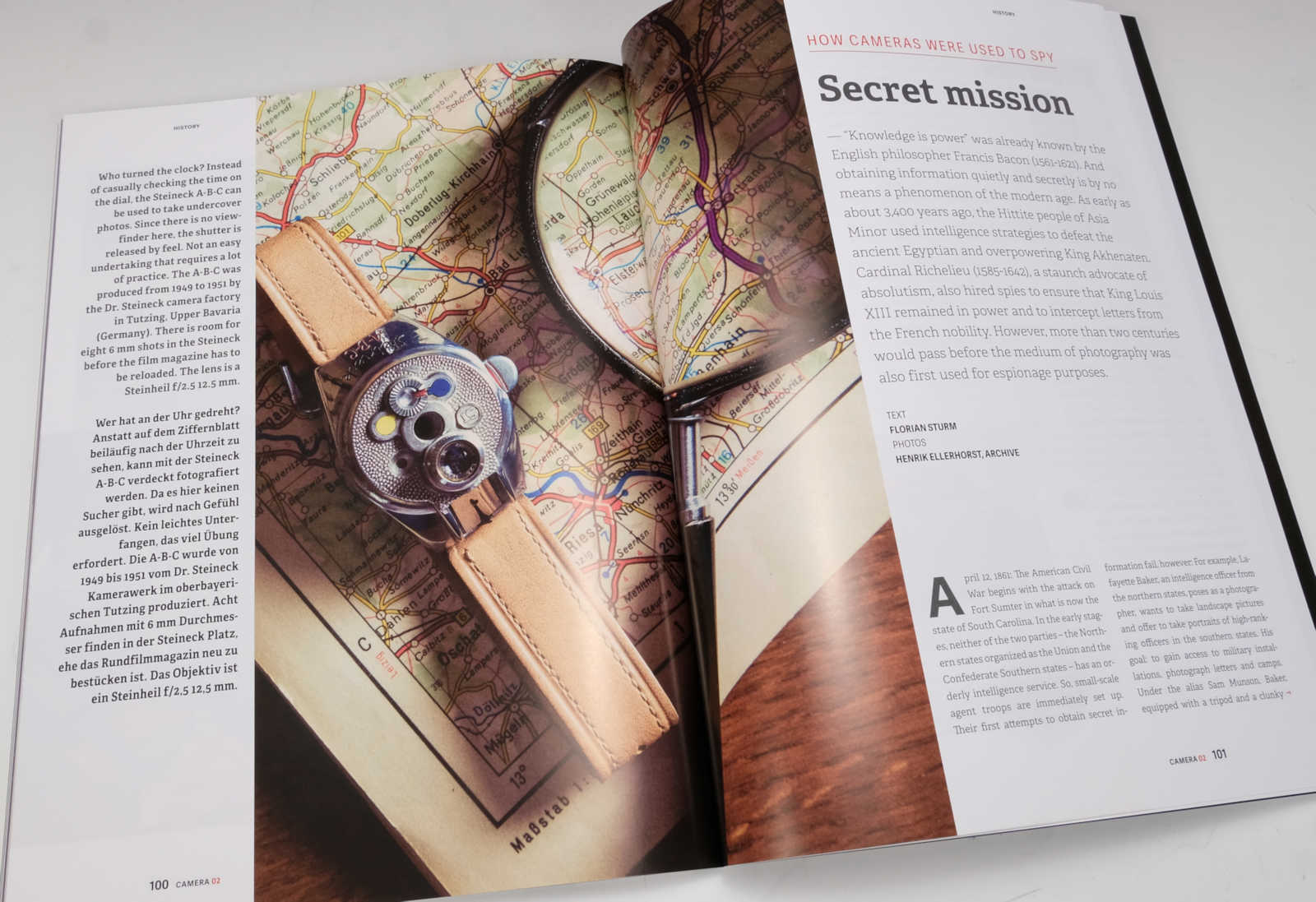 Das Heft schliesst mit zwei weiteren Schwerpunkten. Da ist einmal die Geschichte von Nikon, mit der Auflistung der wichtigsten Kameramodellen in einer Timeline. Viele werden sich an die Meilensteine von damals erinnern, Sammler werden einige davon in ihrem Vitrinen haben und viele dieser «Filmlegenden» dürften heute noch – oder wieder – im Einsatz sein. Dann geht es ab in die Welt der Miniatur- und Spionagekameras, die als vielfältigste Konstruktionen quer durch die Kamerageschichte benutzt wurden, um dubiose Personen versteckt zu fotografieren und vertrauliche Dokumente zu reproduzieren. Welche Kameras dazu im Gebrauch waren, und wie man in den einzelnen Fällen vorging, liest sich themenentsprechend wie ein Krimi.
