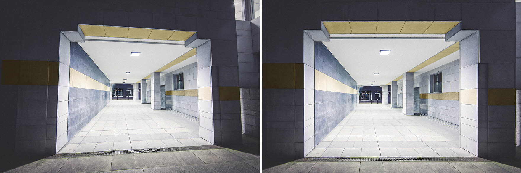 Vorher, nachher: Links ist die Originalaufnahme und rechts die mit ViewPoint korrigierte Version zu sehen. (Bild und © Luca Nicolao)