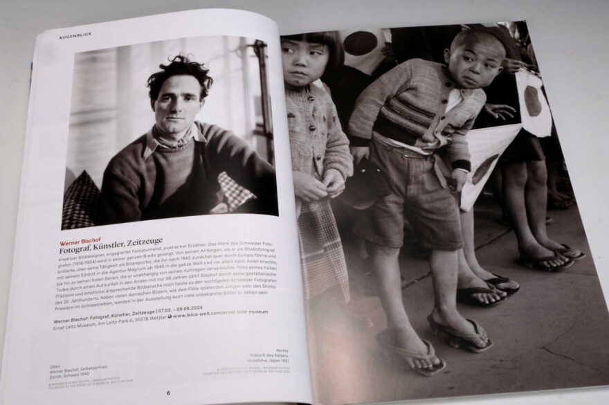 PhotoKlassik berichtet auch immer informativ und aktuell über die kulturellen Veranstaltungen in Deutschland, was auch für reisende Schweizer interessant ist. So widmet das Heft der Ausstellung «Werner Bischof – Fotograf, Künstler, Zeitzeuge» eine Doppelseite mit dem Hinweis, dass diese noch bis 9. Juni 2024 im Ernst Leitz Museum in Wetzlar zu sehen ist, was sich mit einem Besuch des Leica Headquarters verbinden lässt.