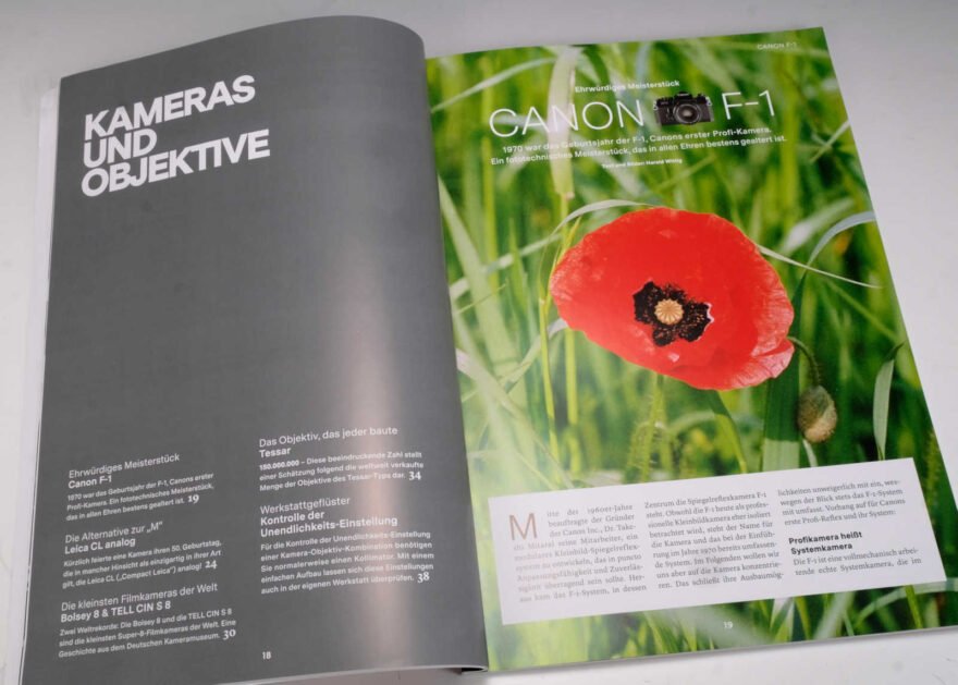 Ehrwürdiges Meisterstück: Canon F-1 / Die Alternative zur «M»: Leica CL analog / Bolsey 8 & TELL CIN S 8: Die kleinsten Filmkameras der Welt / Tessar: Das Objektiv, das jeder baute / Werkstattgeflüster: Kontrolle der Unendlichkeits-Einstellung