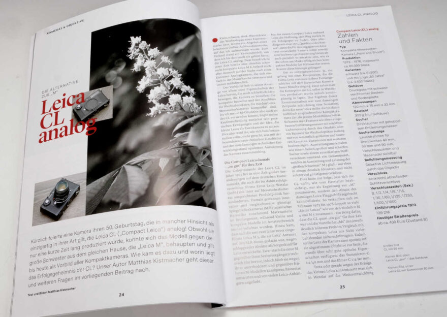 Vor 50 Jahren verblüffte die Leica CL als noch kompaktere Kamera mit Wechselobjektiven die M-Fotografen. Sie wurde nur während einer kurzen Zeitspanne produziert, doch gilt sie heute noch als Vorbild für Kompaktkameras und erfreut sich unverändert grosser Beliebtheit. Wie es zu dieser Kamera kam und worin das Erfolgsrezept der CL lag, steht in diesem Artikel.