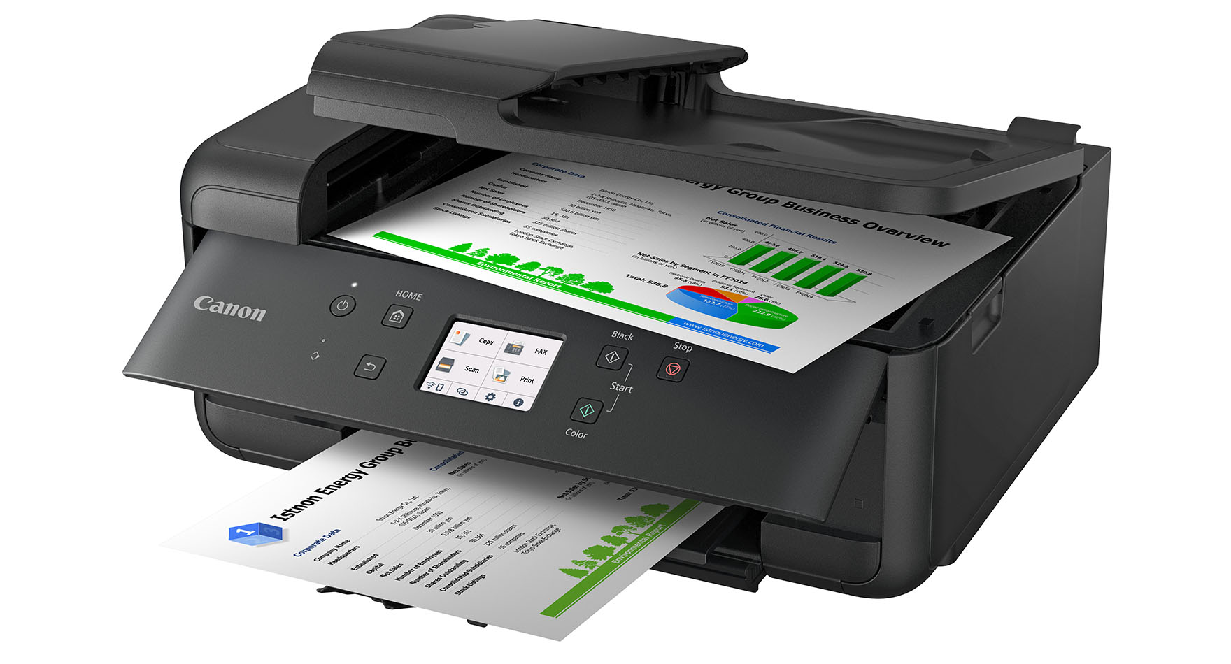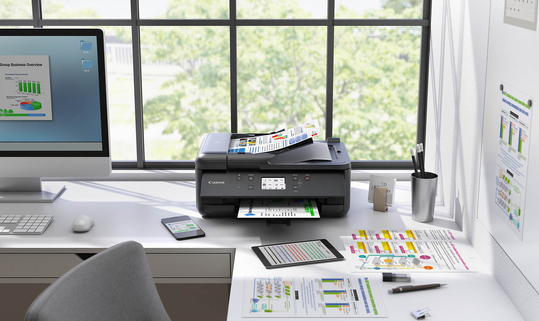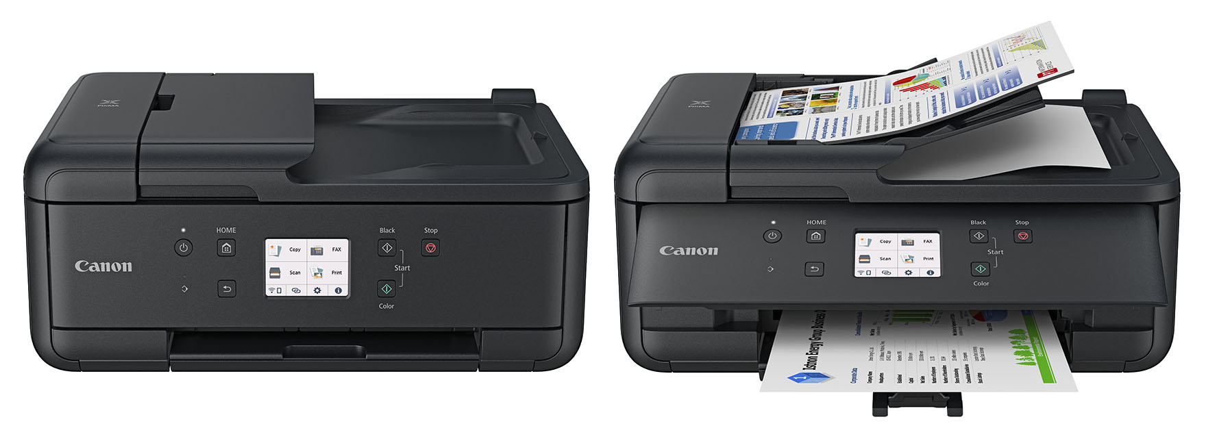 Im April 2024 bringt Canon mit dem Pixma TR7650 ein weiteres Office-Multifunktionsgerät (MFG) auf den Markt, das sich mit fünf einzeln auswechselbaren (Single Ink) Tintenpatronen gut für häufige Farb-/Fotodrucke im Home Office und einem kleinen Büro oder im Home Office eignet. Ebenfalls ein Plus für Office-Anwendungen ist der integrierte Stapeleinzug (englisch Automatic Document Feeder, kurz ADF), der 20 Blätter fasst und im Stapelbetrieb das Scannen oder Kopieren ermöglicht.