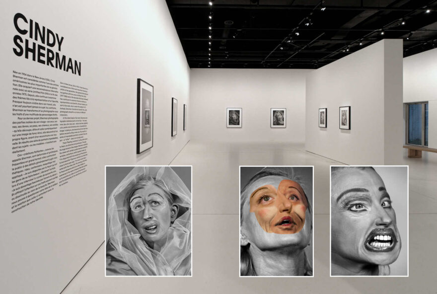 In einer weiteren Ausstellung finden wir Selbstporträts von Cindy Sherman, die sich seit mehr als vierzig Jahren mit den Themen der Darstellung und Identität befasst. In der Doppelrolle als Fotografin und Modell, die mit traditionellen Verwandlungsmethoden wie Makeup, Perücken oder Kostümen spielt, kreiert Sherman Porträts von Frauen mit ähnlichen und doch sehr unterschiedlichen Gesichtszügen, wobei sie immer ihren eigenen Körper dazu verwendet. Der Eindruck einer fragmentierten Identität, typisch für unsere heutige Gesellschaft, kommt besonders in ihren Figuren zum Ausdruck, die sie seit den 2000er-Jahren mithilfe digitaler Bildbearbeitung konstruiert.