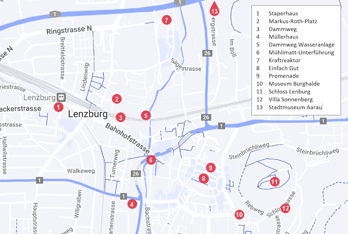 • Bei einem Spaziergang durch die Stadt, entdecken die Besucher ein Lenzburg von heute und damals. Eine Stadt die schon immer dynamisch und in Bewegung war. Mit Unterstützung des Fond DigiCulture des Kantons Aargau und dem Museum Burghalde.