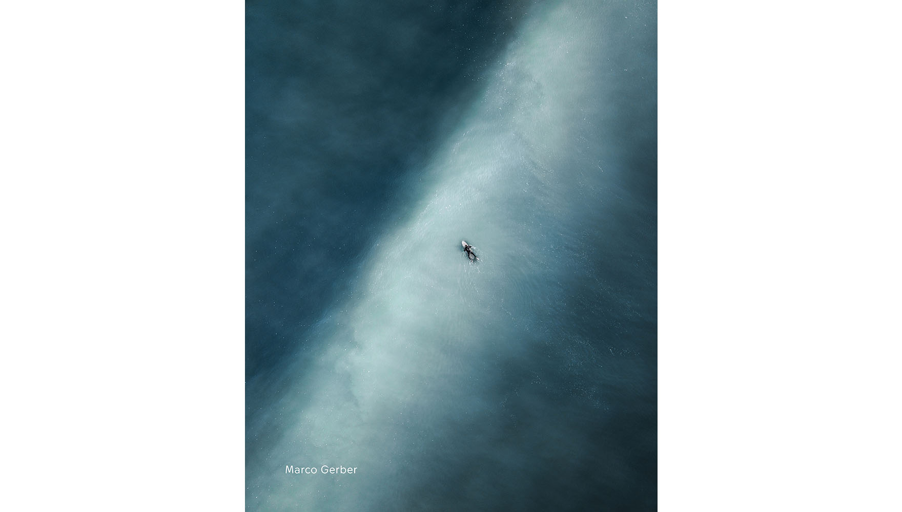 Die beste Bildgestaltung zu finden, damit die Elemente in ihrer Ausrichtung perfekt zusammenpassen, war die grösste Herausforderung. Mich haben die Farbunterschiede im Meer fasziniert. Das war ganz früh am Morgen, zum Sonnenaufgang. Die Sonne zauberte diese selektiven, helleren Partien in die Wellen. Es war schwer, den Moment abzupassen, in dem die anrollenden Wellen mit ihren Farbunterschieden und die Surfer «kollidierten».