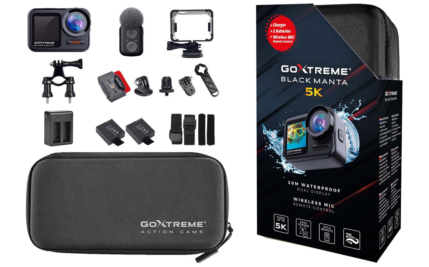 Unter der Marke GoXtreme bietet EasyPix immer wieder neue Action Cams an, mit denen sich Abenteuer, sportliche Aktivitäten oder auch der Badespass während den Ferien in Videos einfangen lassen. Mit der «Black Manta» präsentiert das Unternehmen nun seine jüngste Kamera, die mit einem Komplettpaket an Zubehör kommt. Die Action Cam ist nicht nur bis zu einer Tiefe von 20 Metern ohne Gehäuse wasserdicht, sondern bietet auch eine Vielzahl weiterer innovativer Features, die sie zur perfekten Wahl für Abenteuer und Wassersportler machen.