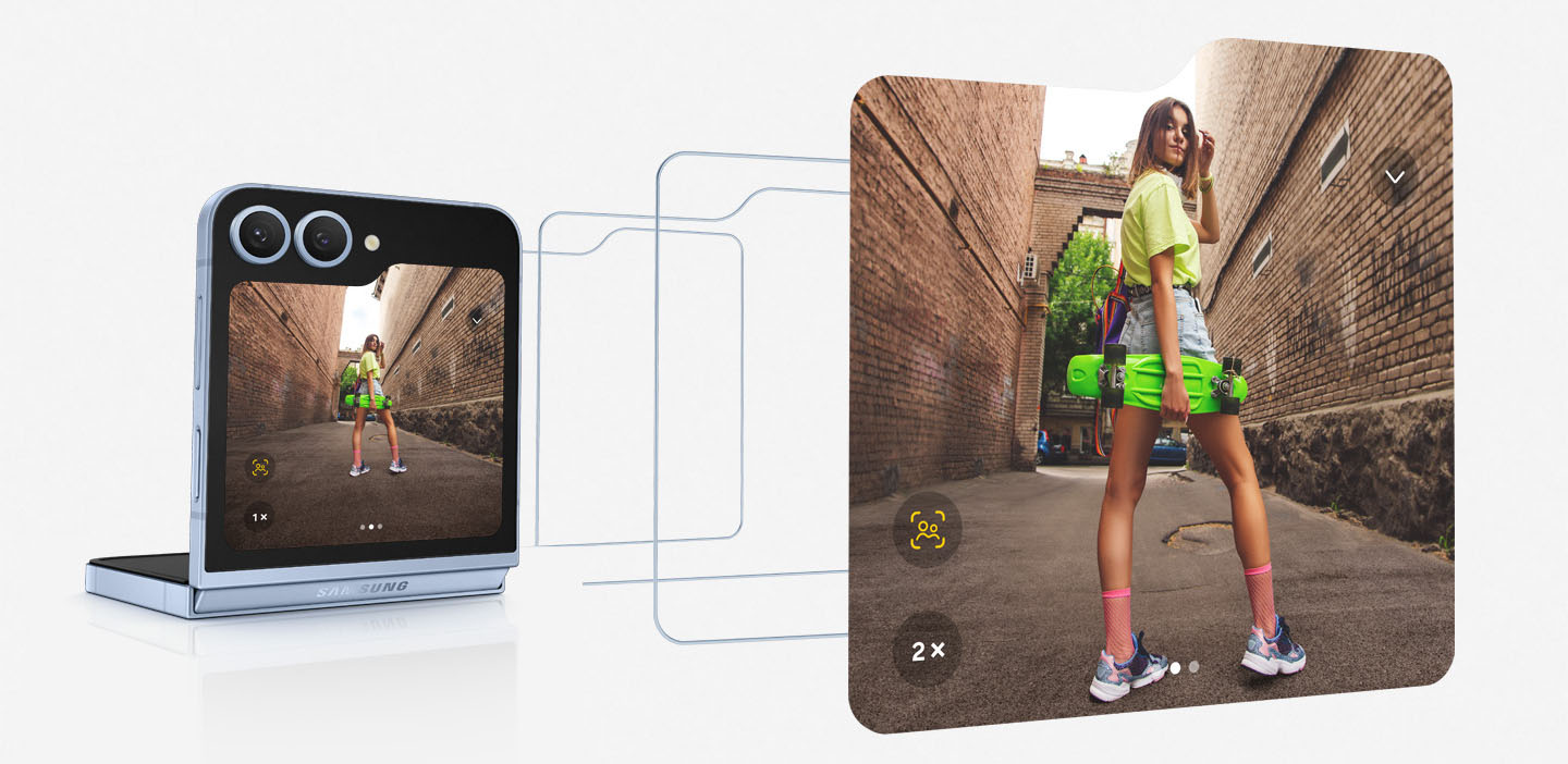 Neue 50-Mpx-Weitwinkel- und 12-Mpx-Ultraweitwinkelsensoren gehören zu den Highlights des Z Flip6. Sie bieten ein verbessertes Kameraerlebnis mit klaren und scharfen Details in Bildern. Der neue 50-Mpx-Sensor unterstützt 2x optischen Zoom für eindrückliche Fotos und bietet zudem einen AI-Zoom für perfekte Aufnahmen mit bis zu 10-fachem Zoom. Die Nightography-Funktion, verbessert durch Video-HDR, ist ab sofort auch in der Instagram-Story-App verfügbar, sodass spektakuläre Nachtaufnahmen direkt in der Story gepostet werden können.