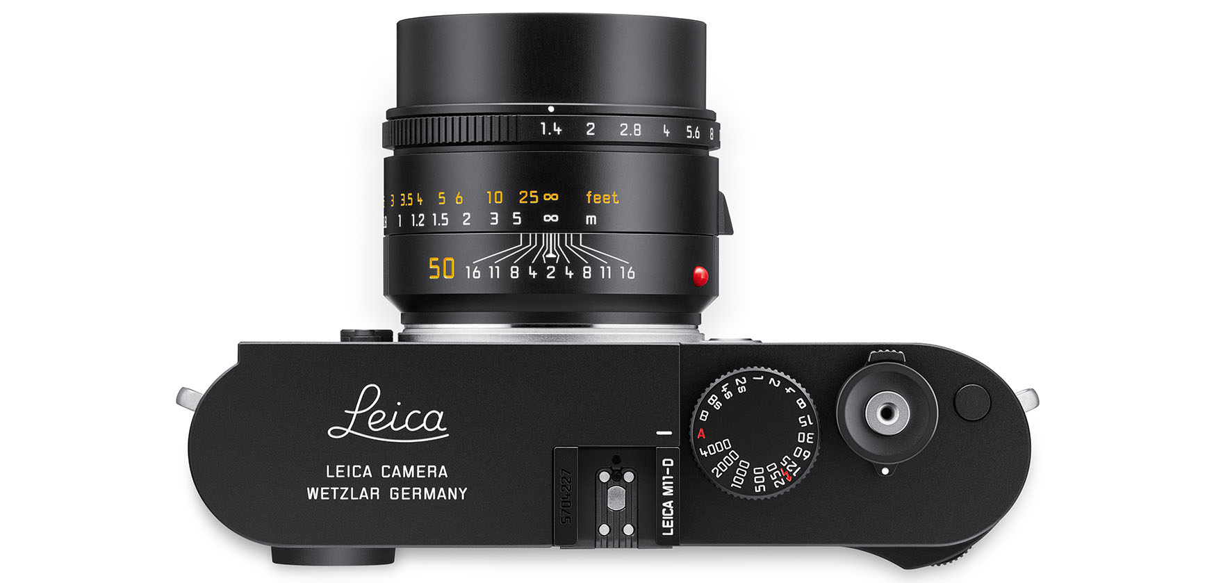 Die neue D-Variante der M11 ist eine puristischere Variante, der ohnehin puristischen M-Kameras. Sie verzichtet vorne auf das auffallende rote, runde Marken-Logo (Leica Punkt).