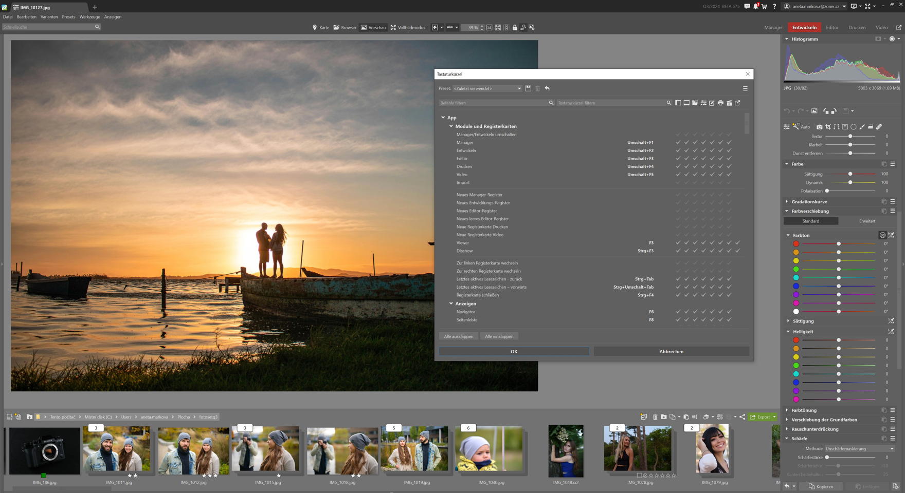 Die Tastaturkürzel lassen sich festlegen und auch in welchen Arbeitsbereichen dies vorhanden sind.