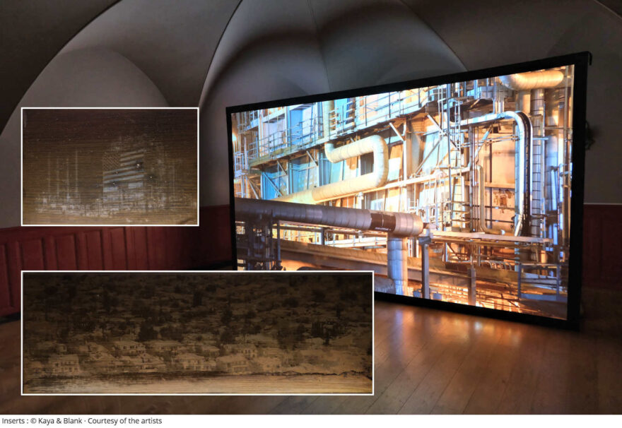 Vom gleichen Künstlerpaar stammen auch die Bilder von «Crude Aesthetics». Die Tatsache, dass keine andere Nation der Welt so viel Öl verbraucht wie die Vereinigten Staaten und dass diese Ressource seit Jahrzehnten die Politik der Nation bestimmt, hat Kaya & Blank bewogen in verschiedenen Ölraffinerien und ähnlichen Einrichtungen zu filmen und zu fotografieren. Eine Sequenz ihrer statischen Aufnahmen spiegelt das Auf und Ab der Pumpjacks in einem immerwährenden, hypnotischen mechanischen Ballett wider. Das türkisch-deutsche Künstlerduo fotografierte zudem amerikanische Symbole, die mit dem übermässigen Verbrauch von Öl in Verbindung stehen passend mit dem allerersten Verfahren der Fotografie, den Bitumenbilder, wie sie Nicéphore Niépce vor knapp 200 Jahren anfertigte. Die Installation «Crude Aesthetics» zeigt eine poetisch-dystopische Vision einer vom Öl geprägten Gesellschaft.