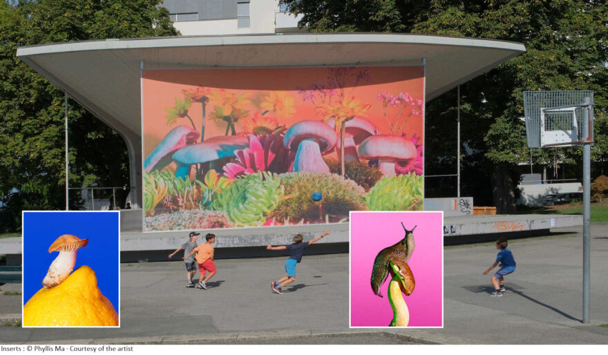 Bei einem Besuch einer Pilzfarm in Brooklyn im Jahr 2019 war Phyllis Ma fasziniert von der surrealen Erscheinung der unter Blaulicht wachsenden Spezies. Für ihre Serie «Mushrooms & Friends» hat Ma sowohl kultivierte als auch wilde Arten fotografiert. Die chinesisch-amerikanische Fotografin verdeutlicht in ihrem Projekt die wachsende Bedeutung von Pilzen in so unterschiedlichen Bereichen wie Ernährung, Bauwesen und Mode. Die im Untergeschoss des Théâtre de Verdure präsentierte Installation ist eine Hommage an die unglaubliche Fähigkeit der Pilze, ein unterirdisches Netzwerk zu bilden, das für ihr Überleben und die Regeneration des Bodens notwendig ist.