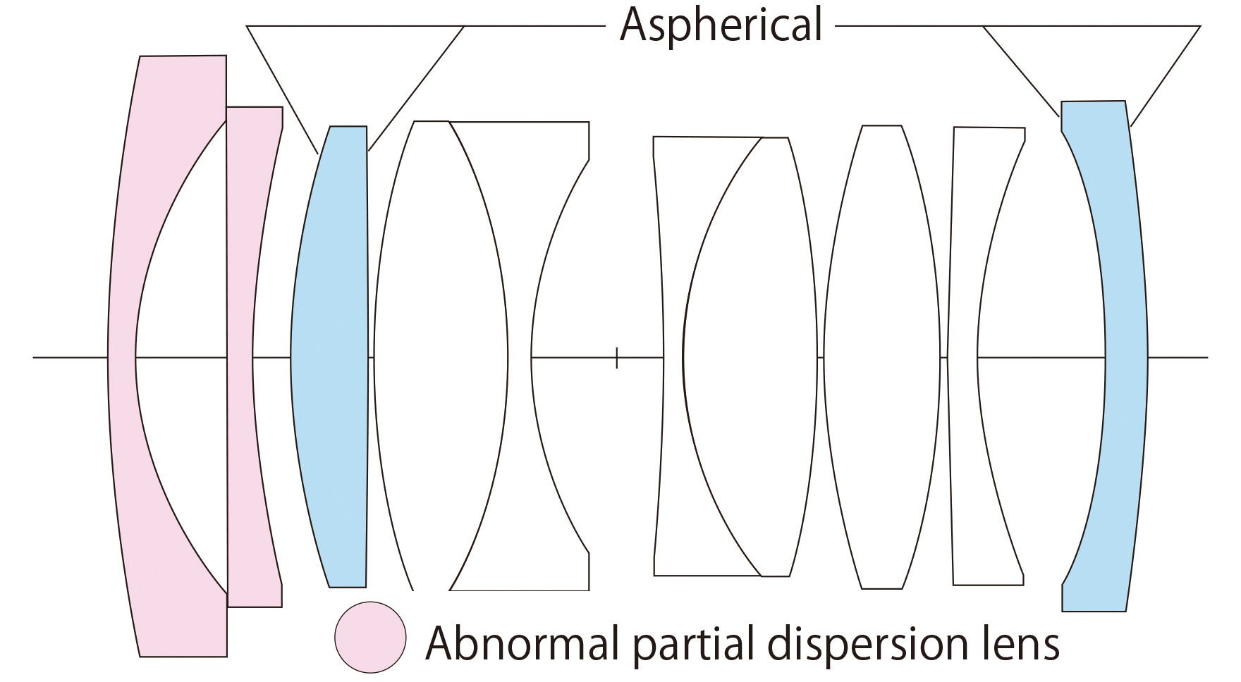 Optischer Aufbau 10 Linsen in 8 Gruppen