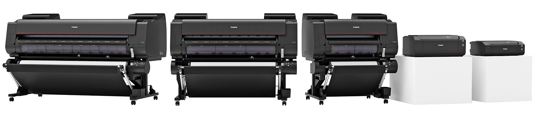 Die «imagePROGRAF PRO;Familie von rechts nach links: Canon imagePROGRAF PRO-310 (PRO-1100 – PRO-2600 – PRO-4600 – PRO-6600)