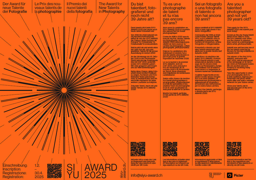 Wie mitmachen? Die Teilnahme ist einfach! Ab sofort können interessierte Fotografinnen und Fotografen ihre Arbeiten direkt über die picter-Website einreichen. Alle Informationen zur Teilnahme sowie die vollständigen Wettbewerbsbedingungen finden sie unter siyu-award.ch oder direkt über die Eingabeseite von picter.
