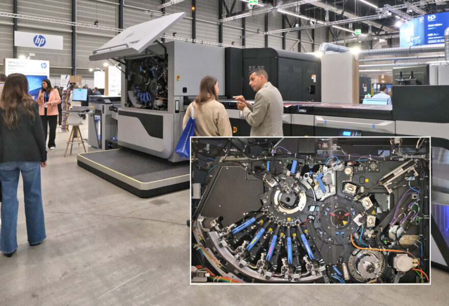 HP Indigo ist eine der wichtigsten Druckmaschinen für Fotobücher und andere hochwertige Drucksachen. HP zeigt an den Innovationdays die neue 18K B2-Digitaldruckmaschine, welche KI-Tools nutzt für maschinelles Lernen der automatischen Fehlererkennung, vorausschauende Wartung und zur Produktivitätssteigerung. Mit sieben Farbstationen bietet sie auch die Möglichkeit, spezielle Tinten wie fluoreszierende und transparente Farben zu verwenden.