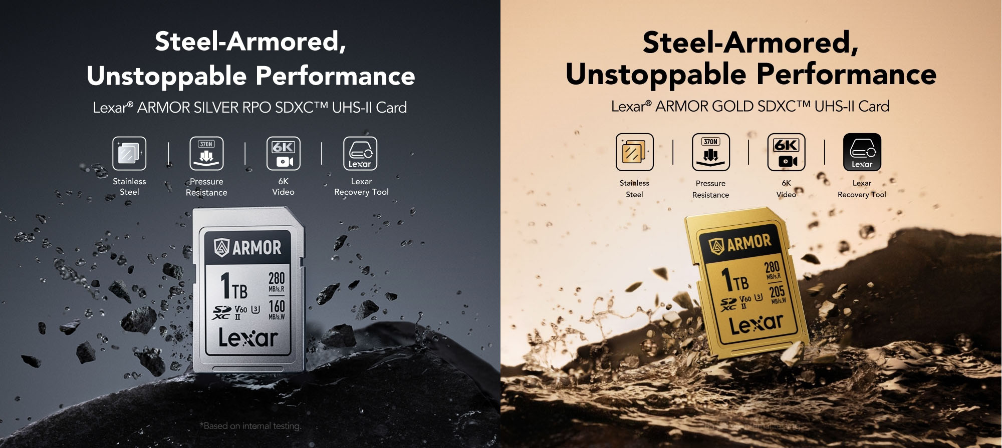 Die «Armor Gold»- und «Armor Silver Pro»-SD-Karten wurden speziell für die Anforderungen professioneller Fotografen entwickelt. Während sich herkömmliche aus Plastik gefertigte Speicherkarten schneller abnutzen und leichter Schaden nehmen, sind die SD-Karten der Armor-Serie laut Lexar 37-mal widerstandsfähiger. Sie bieten einen besonderen Schutz gegen Verbiegen, Brechen und alltägliche Abnutzung.