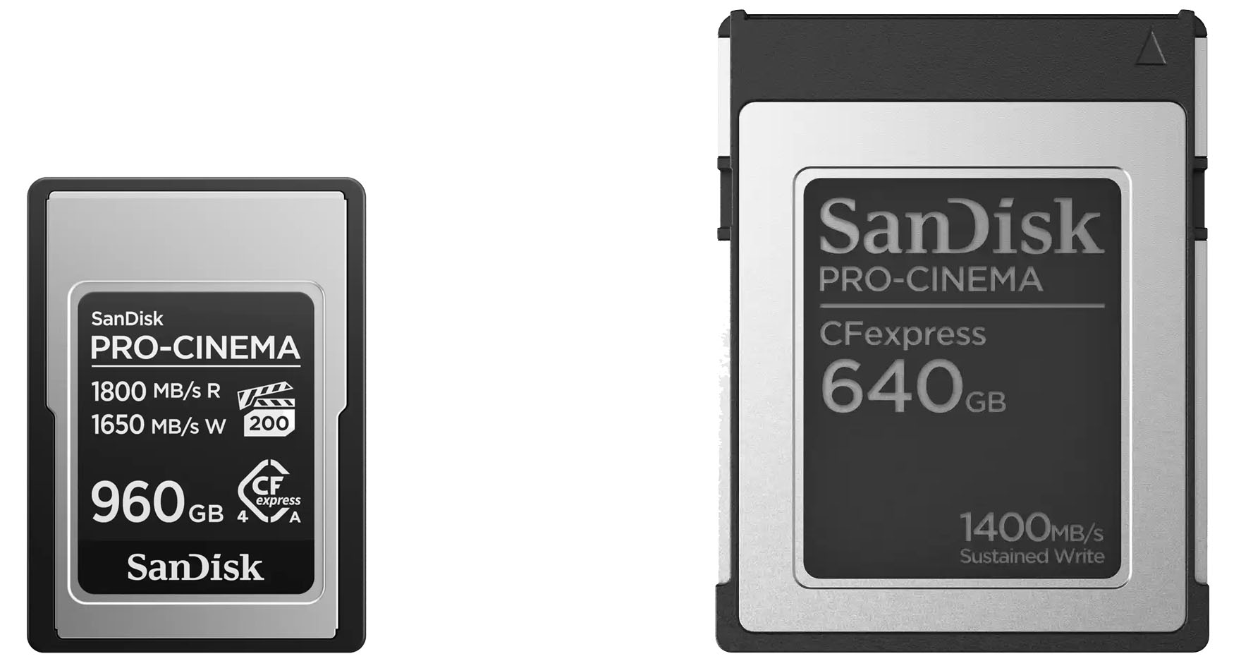 SanDisk PRO-CINEMA CFexpress Type B erwähnte, Ende 2023 eingeführte Kartentypen (Produktseite)