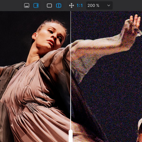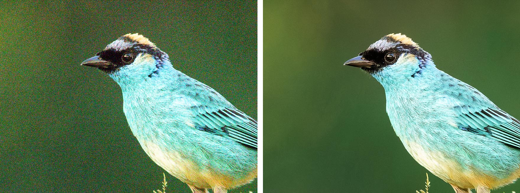 Vorher-Nochher-Vegleich zur Rauschminderung: Das Vorherbild ist in dieser offiziellen Hero-Illustration rechts zu sehen (Aufnahme/@ Agathe Poupeney)