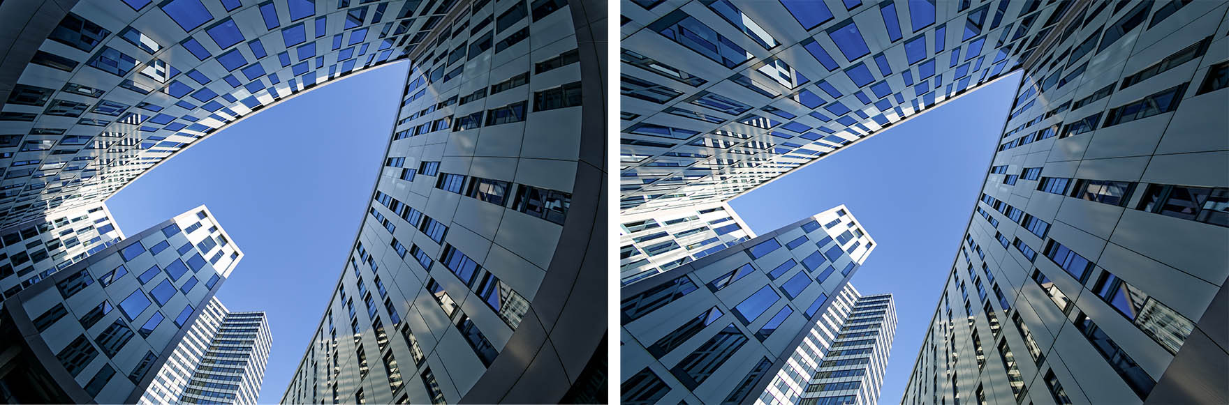DxO PureRAW5 vorher-nachher. Zu den Kernkompetenzen von DxO gehören optische Korrekturen – wie in diesem Beispiel die Korrektur der Verzeichnung des FisheyeZooms EF 0815mm von Canon (Bild/© Bild WanjaWiese)