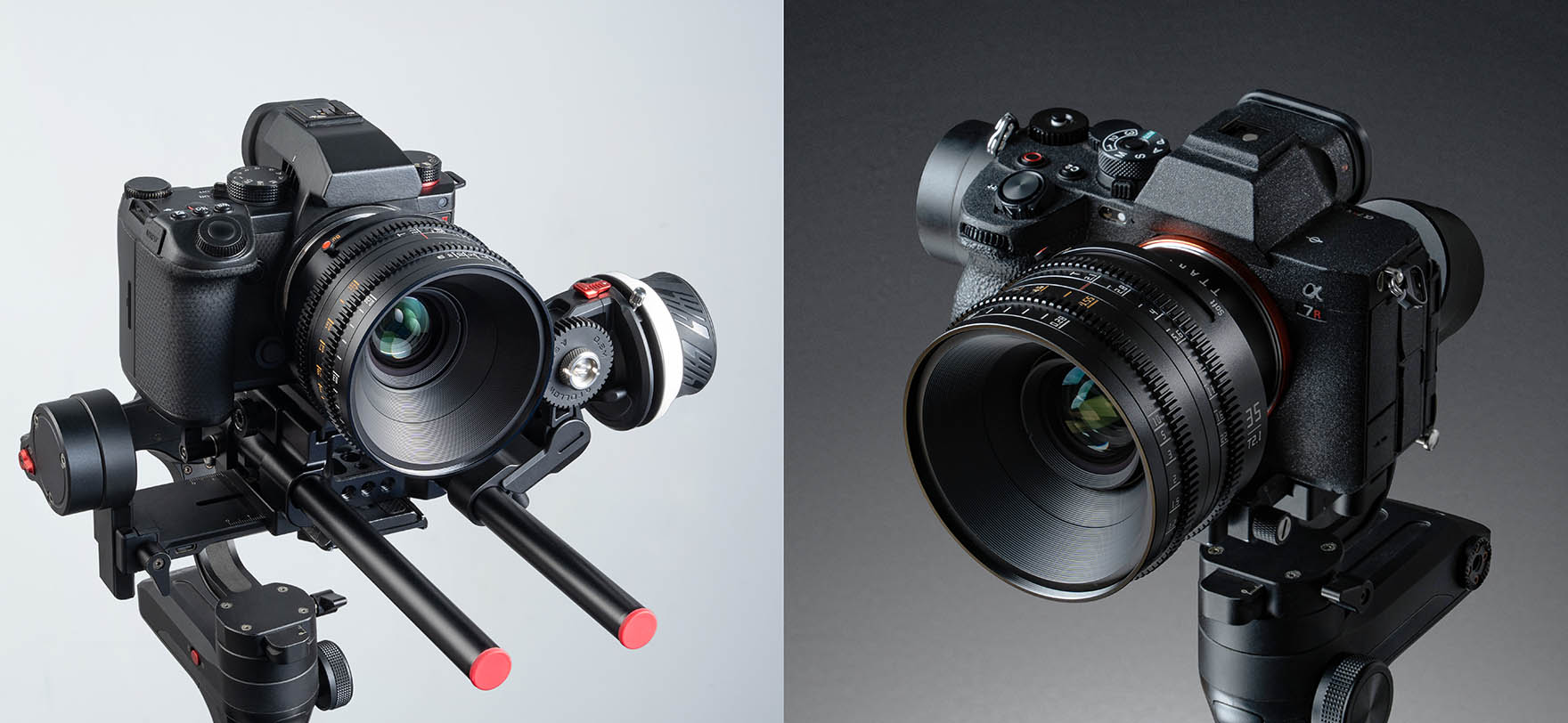 Das «TTArtisan 35mm T2.1» ist eine lichtstarke Festbrennweite für spiegellose Vollformatkameras. Hier links an einer Panasonic mit einem seitlich angebrachten Follow Focus und rechts an einer Sony