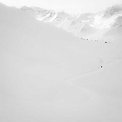 Was wäre, wenn sich morgen die Erde rächen und der Schnee verschwinden würde? Diese Prophezeiung ist der Albtraum des Genfer Fotografen. Als Bergliebhaber durchstreifte er mehrere Wintersaisons lang abgelegene, verschneite Täler und überfüllte Skipisten. Er liefert uns Fotos von seltener Kraft. Minimalistisch, mit einem millimetergenauen Bildausschnitt auf das Wesentliche gerichtet, sublimieren seine quadratischen Abzüge die Zerbrechlichkeit des Schnees.