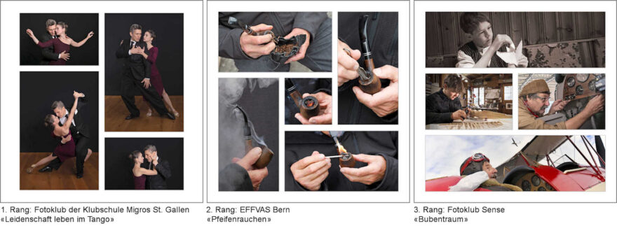 «Das Sieger-Tableau ‘Leidenschaft leben im Tango’ des Fotoklubs der Migros Klubschule St. Gallen zeigt eine elegante Komposition von Tanz und Leidenschaft. Die Aufnahmen sind technisch perfekt ausgearbeitet. Die Farbstimmung, wie auch Hingabe, Erotik und Sinnlichkeit haben uns überzeugt. Die Bilder sind stilvoll und haben eine strenge Bildaussage, welche wir für den Tangotanz als passend empfinden», so die Begründung der Jury anlässlich der Preisverleihung. Die Ergebnisse aller teilnehmenden Fotoklubs in Form von quadratischen Tableaus sind an der Hauptausstellung im Schlossgutsaal zu sehen. Mit der Teilnahme beim Publikumswettbewerb können Besucherinnen und Besucher diese Fotoausstellung selber bewerten und mit Glück etwas gewinnen. Zur Ausstellung ist ein Katalog mit Rangliste zum Preis von CHF 10.00 erhältlich.