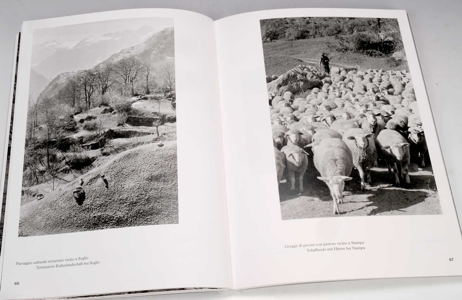 Rund 5000 Bilder aus dem Bergell sollen sich im Nachlass von Ernst Scheidegger befinden, von den 61 repräsentative im Buch und in der Ausstellung zu finden sind. Es sind Bilder, die uns das damalige Maloja-Tal zeigen mit einer naturbelassenen Landschaft, mit seinen vielen malerischen Dörfchen und Weilern und deren urtümlichen Bewohnern – Menschen, mit denen Scheidegger befreundet war und die er auf seinen ausgedehnten Spaziergängen häufig auf einen Schwaz oder zu einem Glas Wein traf. All das findet in diesem Buch seinen Niederschlag in Bildern, die nicht nur dokumentarischen Charakter haben, sondern die mit besonderen Lichtstimmungen und mit dem Bildaufbau eines Könners eine sehr hohe fotografische Qualität aufweisen. Daneben gibt es auch Bilder, die umfangreichen Reportagen entnommen sind, zum Beispiel über den Bau der Albigna-Staumauer im Jahre 1958 oder über den Bergsturz bei Vicosporano von 1990.