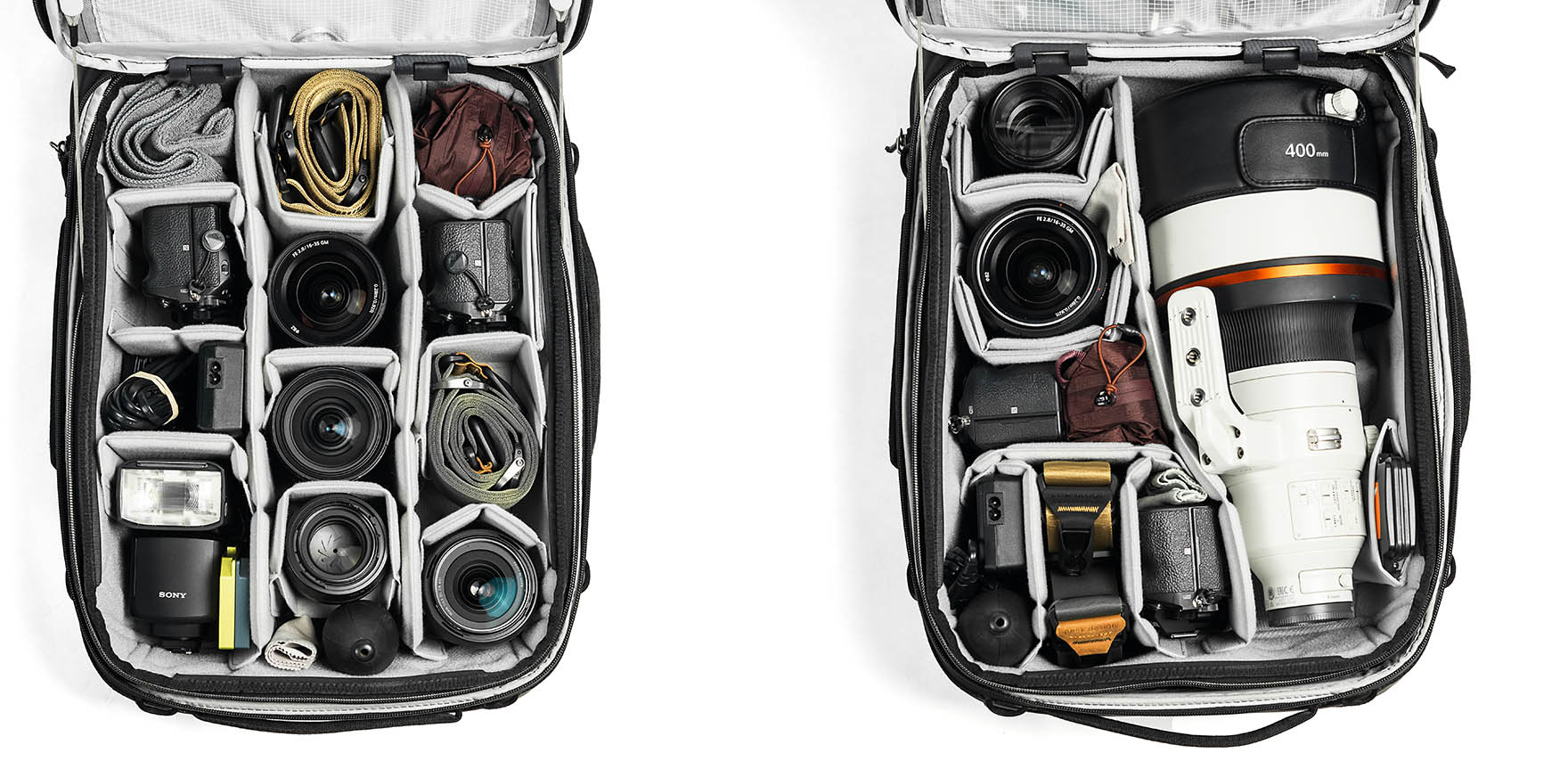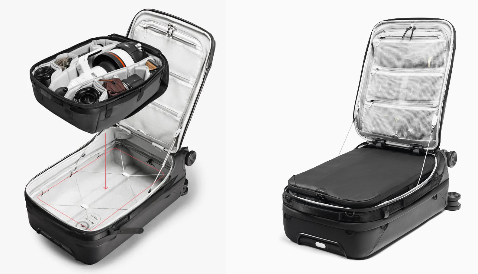 So weit ist der «Roller Pro Carry-on» ein ganz normaler Reise-Rollkoffer, doch mit dem speziell für ihn entworfenen «Camera Cube v2 – X-Large« bietet Peak Design einen optionalen, passgenauen Fotoeinsatz, der den Roller Pro zu einem vollwertigen Foto-Rollkoffer umfunktioniert. Der auf den neuen «Roller Pro» abgestimmte «Camera Cube V2 X-Large» und bietet individuell anpassbaren Stauraum, schnellen Zugriff und optimalen Schutz für ein vollständiges Profi-Kamera-Setup – inklusive vertikalem Stauraum für SD-Karten, Akkus und Kleinzubehör. Der Roller Pro ist nicht nur Transportbehälter, sondern unterwegs, an einer speziellen Photo-Location, im Gelände oder im Studio ein hilfreicher Assistent, der das Equipment übersichtlich bereithalten kann.