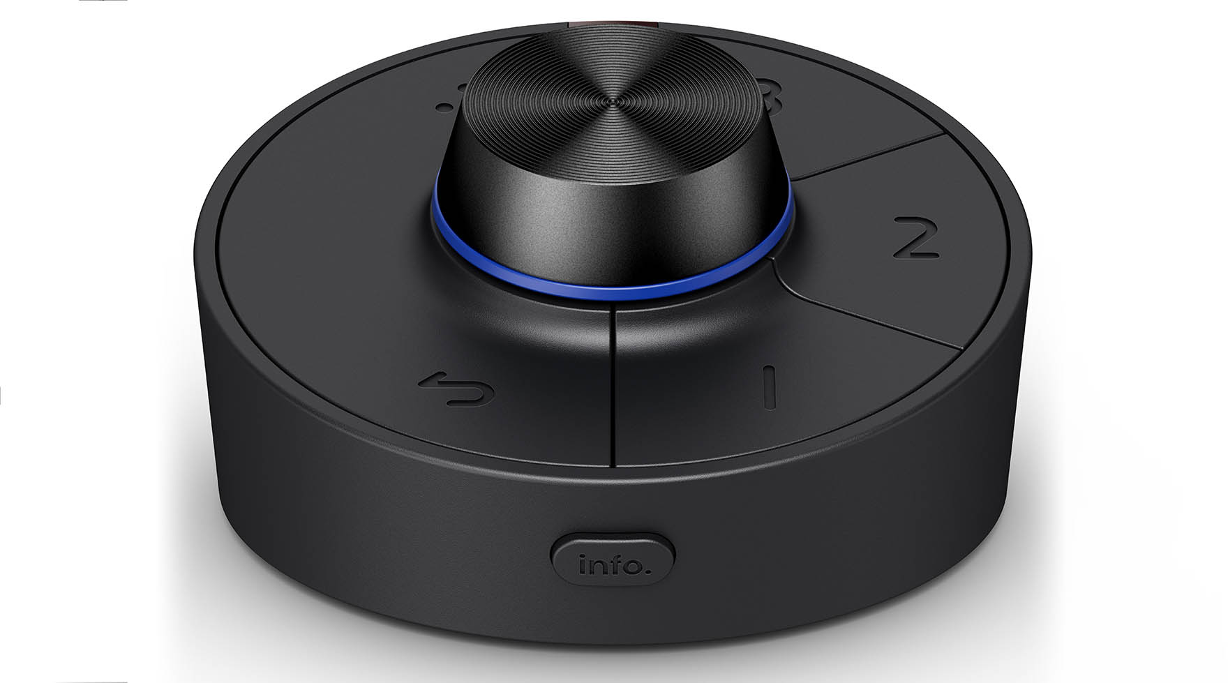 Der kabellose Hotkey Puck, der mit einem vielfach belegbaren Drehregler und insgesamt fünf programmierbaren Hotkeys einen einfachen und schnellen Zugang zu den umfangreichen Möglichkeiten des Menüs in einem On-Screen-Display bietet, ermöglicht beispielsweise auf Knopfdruck das Umschalten zwischen drei Farbräumen