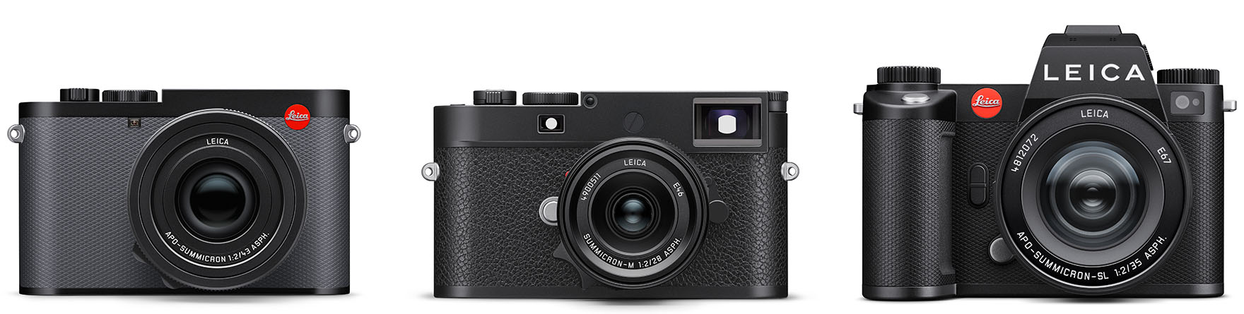 Leica Q3 (links), Leica M11-P (Mitte) und Leica SL3 (rechts)