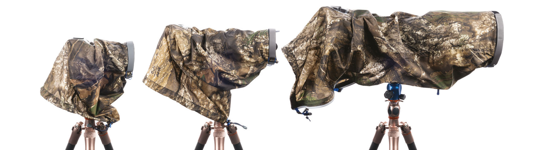 Bislang gab es den Emergency Raincover Large, den Medium und den Small nur in der Farbe Schwarz. Neu wird er auch in einem speziellen grün-braunen Tarnmuster (Realtree APX Camo) angeboten, das von einer spezialisierten Firma designt wurde und u.a. auch für Bekleidung verwendet wird. Diese neue Designvariante empfiehlt sich für alle, die Wildtiere und Vögel in der Natur fotografieren.