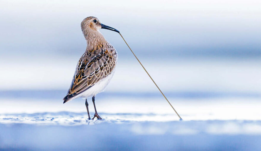 «Während des Herbstzugs machen Tausende Watvögel an der Ostseeküste Halt, um Energie zu tanken. Alpenstrandläufer nutzen ihre langen Schnäbel, um Wattwürmer aus dem Sand zu ziehen. Manchmal kommt der Wurm leicht heraus, manchmal sieht die ganze Szene wie ein echtes Tauziehen aus. Dieses Foto fängt die Anstrengung und Entschlossenheit des Vogels ein, als er sich endlich seinen energiereichen Snack sichert.» Mateusz Piesiak.