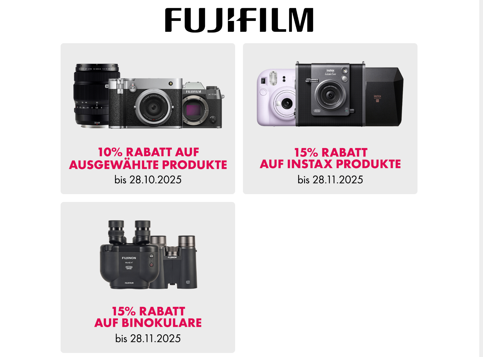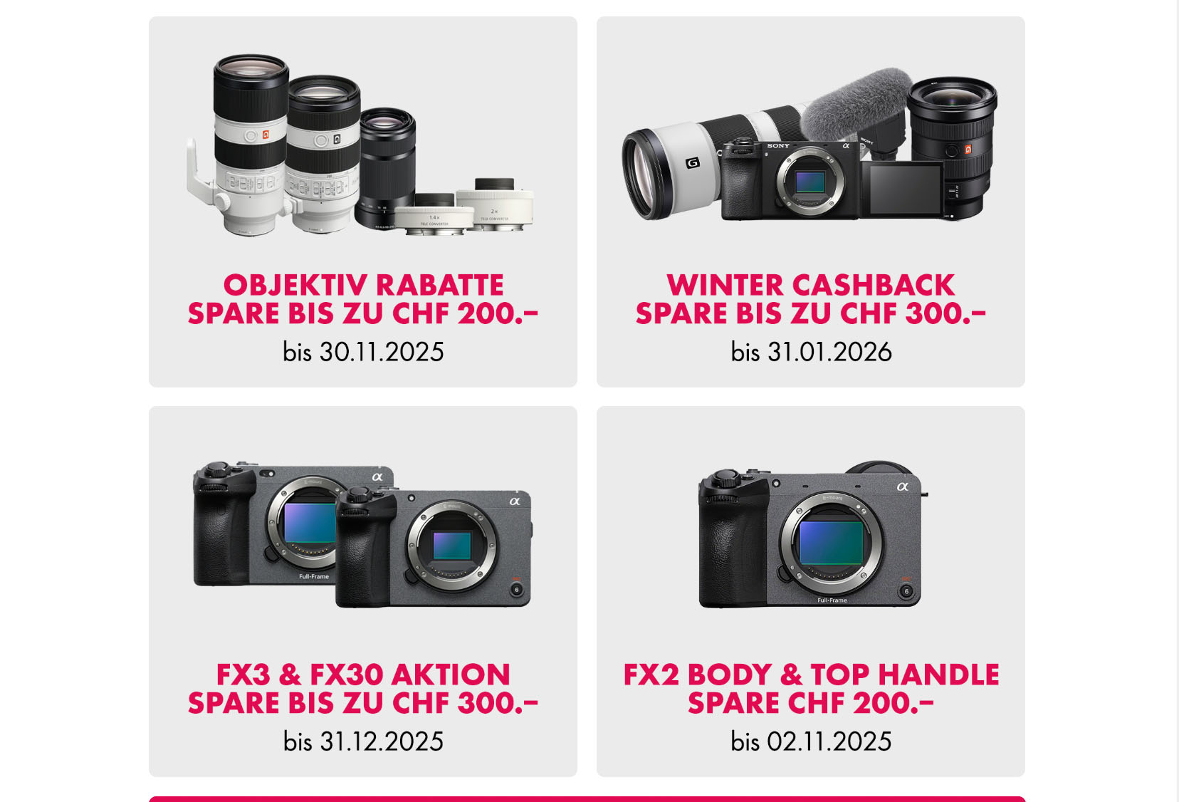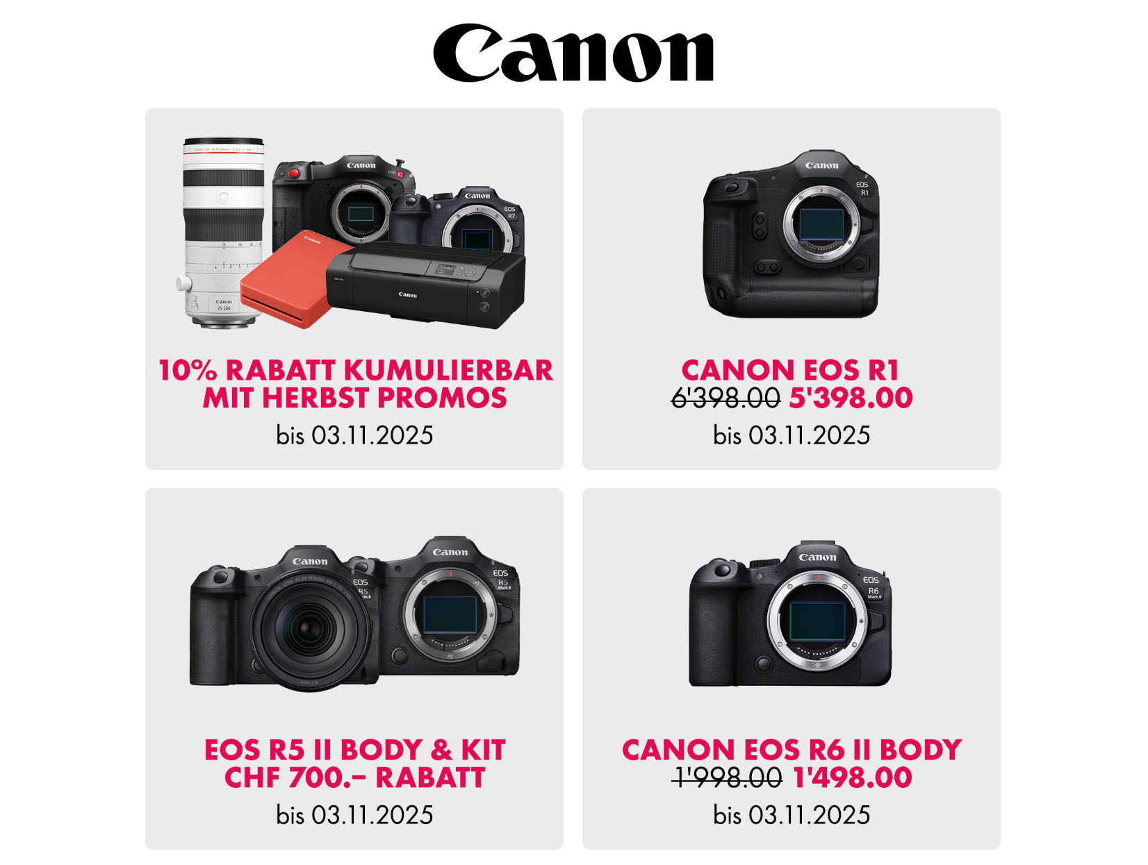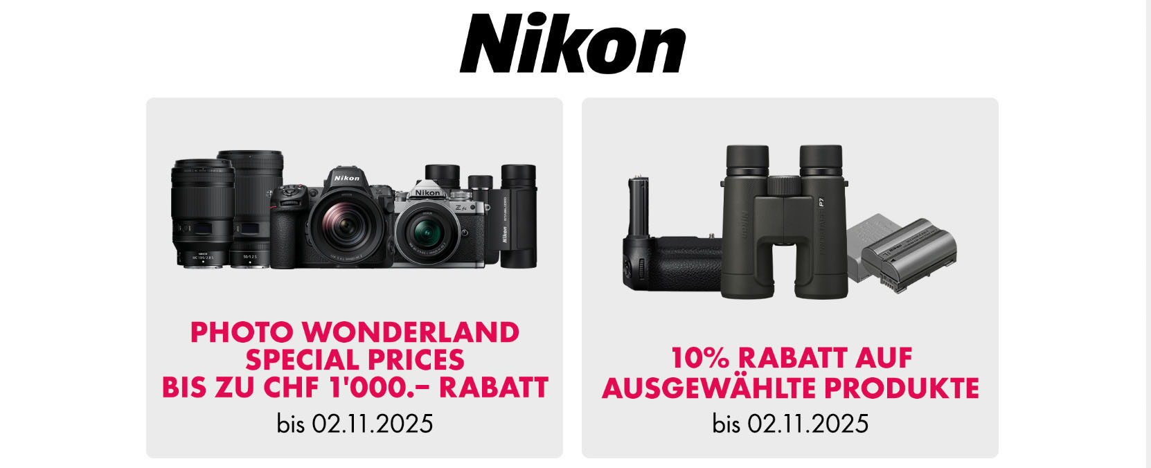 Während der Photo Wonderland gibt es mehrere Aktionen mit Rabatten und Spezialpreisen auf verschiedene Produkte der grossen und der kleinen Marken. Von diesen Aktionen können alle Interessierten über die Aktionsseite der Photo Wonderland 2025 profitieren,